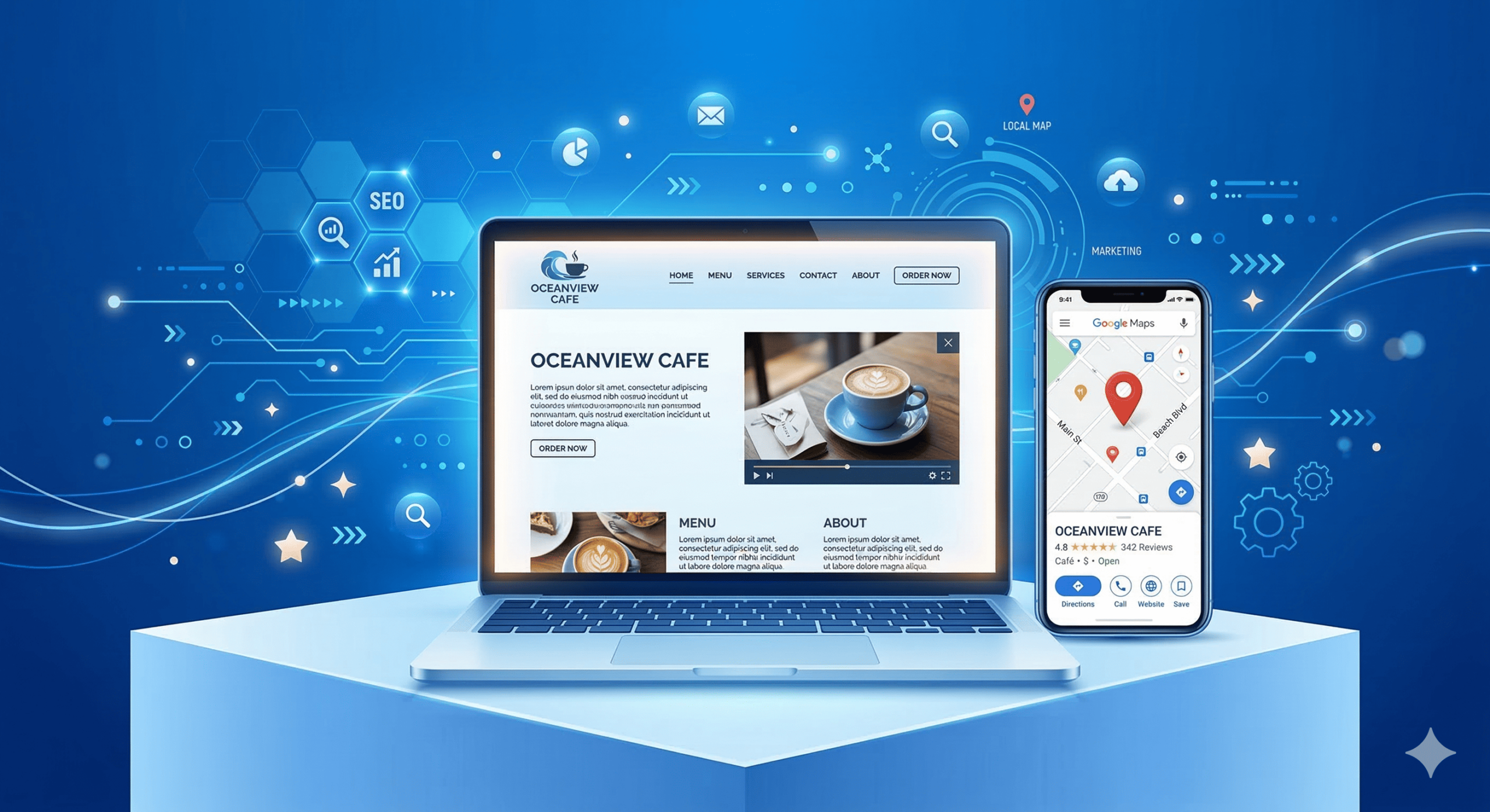 Criamos sites modernos e responsivos e realizamos o cadastro completo no Google Meu Negócio, ajudando sua empresa a ser encontrada por pessoas que realmente precisam do seu produto ou serviço.